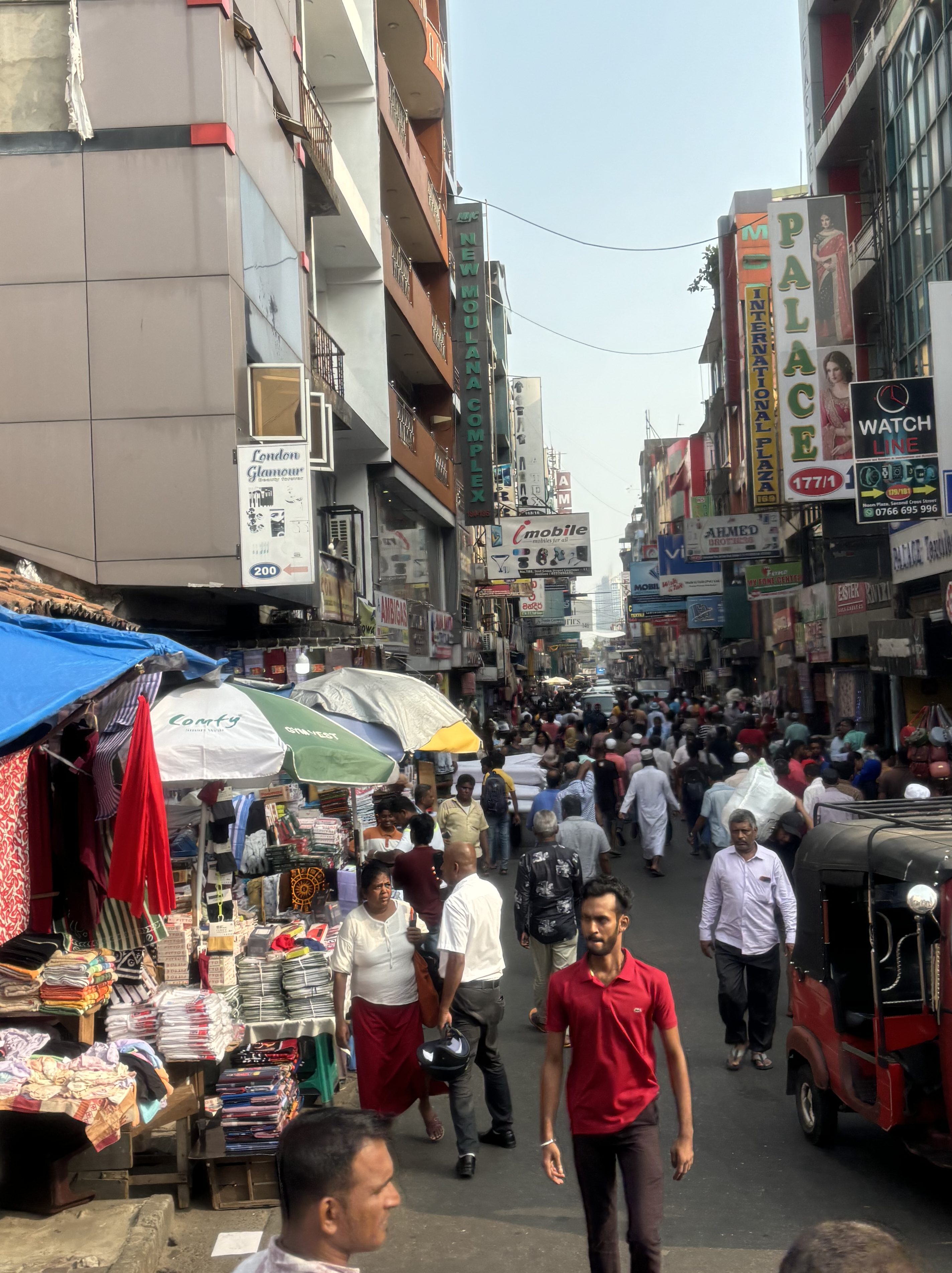 We had two days for touring in Columbo, Sri Lanka, and then one day in Cochin, India – both very interesting. Both cities are about the same population as Seattle. Here’s a typical downtown Columbo street with market action.